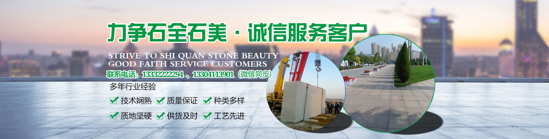“力爭石全石美,誠信服務(wù)客戶”是保林石材的經(jīng)營宗旨,竭誠為各界朋友提供優(yōu)質(zhì)的產(chǎn)品和周到的服務(wù),互利合作,共同發(fā)展。
